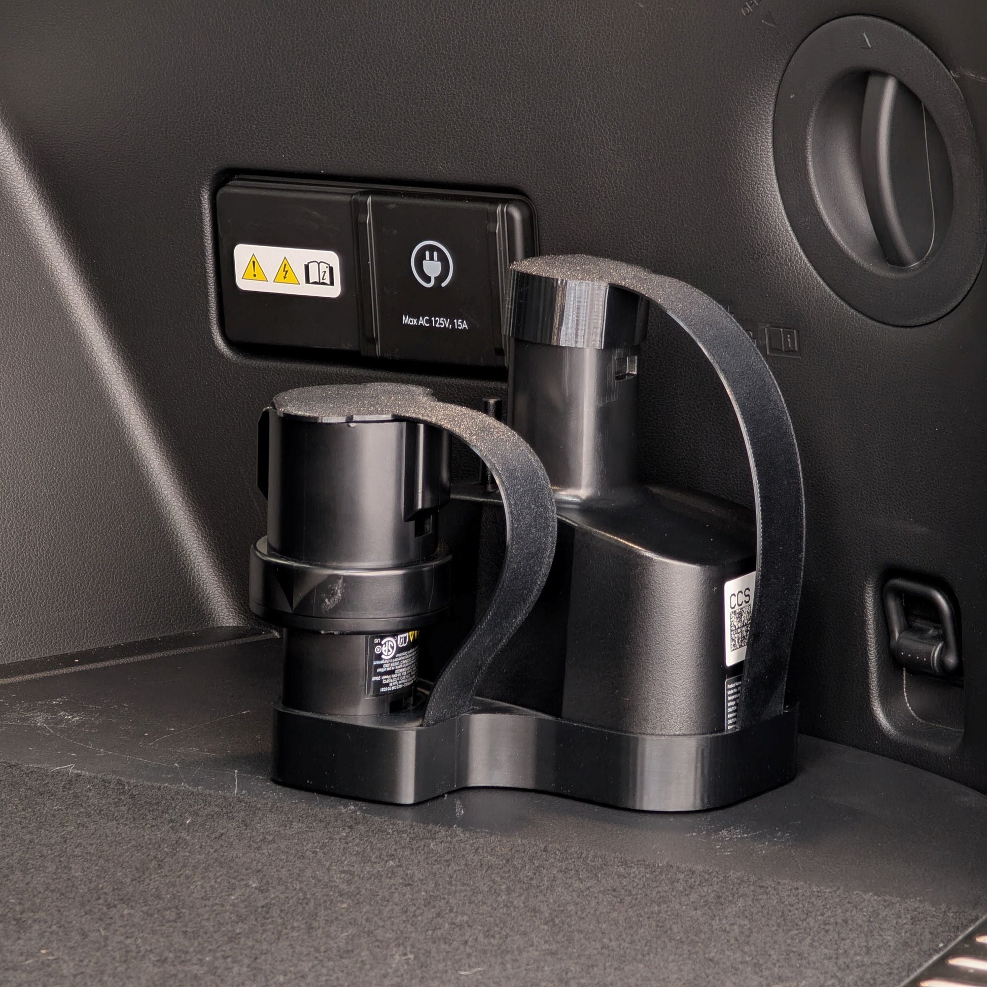 Designed for the 2026+ Ioniq 9 and the included Hyundai official CCS-NACS and J1772-NACS adapters, this adapter holder prevents them from rolling around in your trunk area.