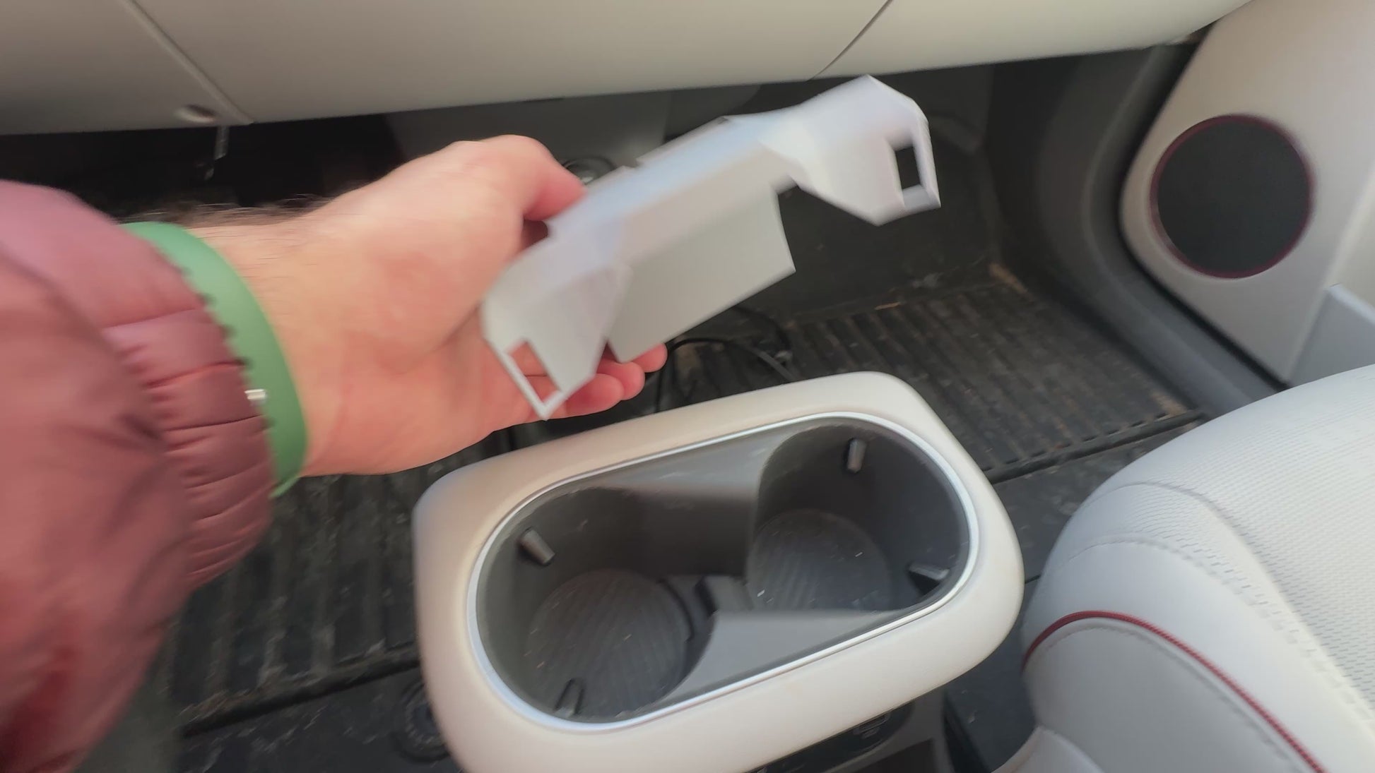 Store one or two phones conveniently at the front of the center console on a 2022-2024 Hyundai Ioniq 5 (will not work with 2025 or newer) allowing easy plug-in for charging and using CarPlay or Android Auto.