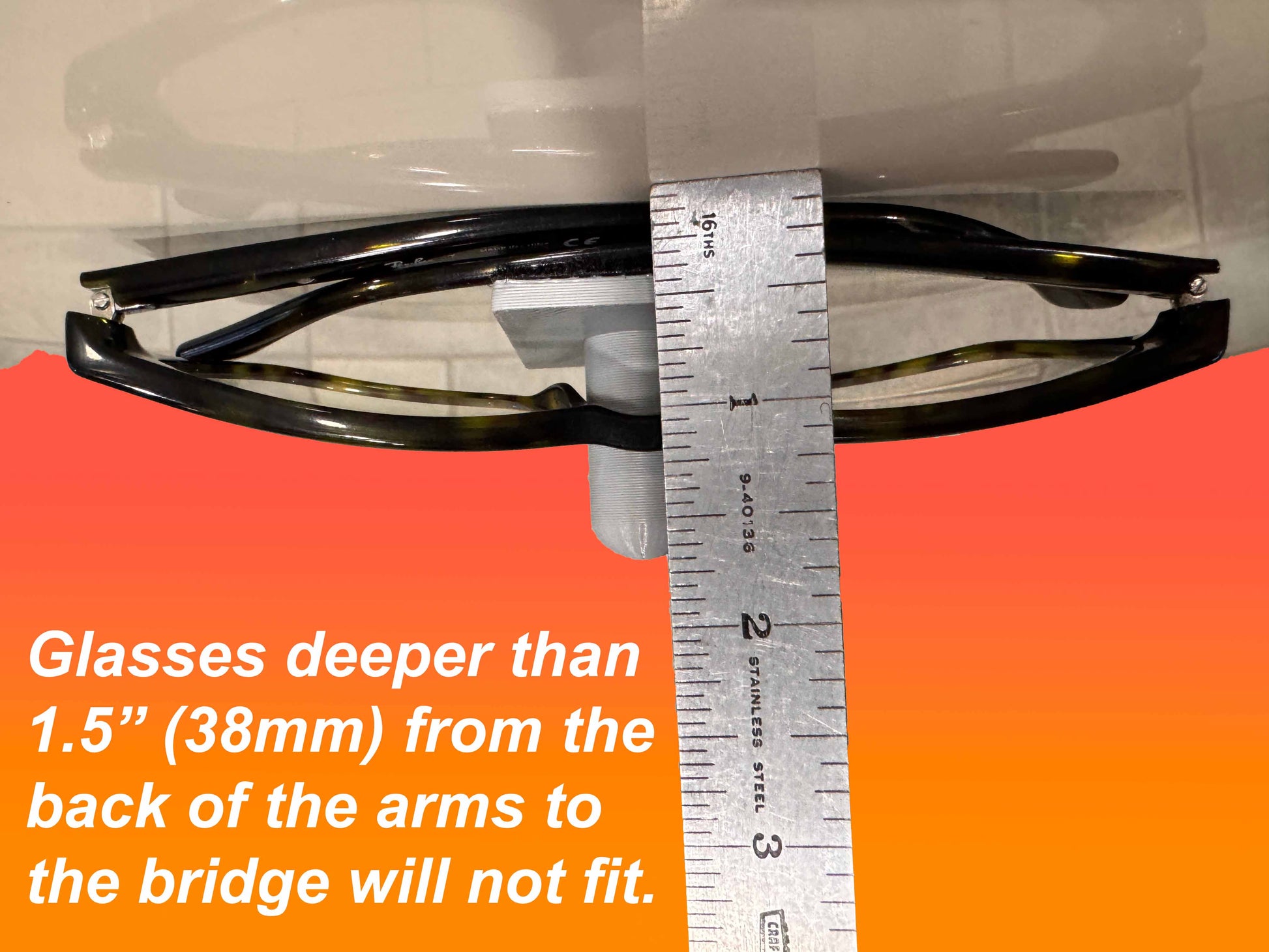 Glasses deeper than 1.5" from the back of the arms to the bridge will not fit such as wrap-around glasses. This item will work well for holding glasses with plastic arm glasses such as Ray-Ban Wayfarers. Glasses with thin wire type arms will not sit as securely so I don't recommend it for those styles. Users of these glasses should purchase this eyewear holder.